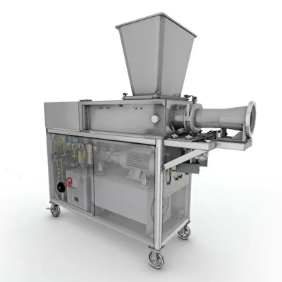 Marlen’s Vari-Kut hydraulic in-line meat grinder is a particle reduction system with variable speed control