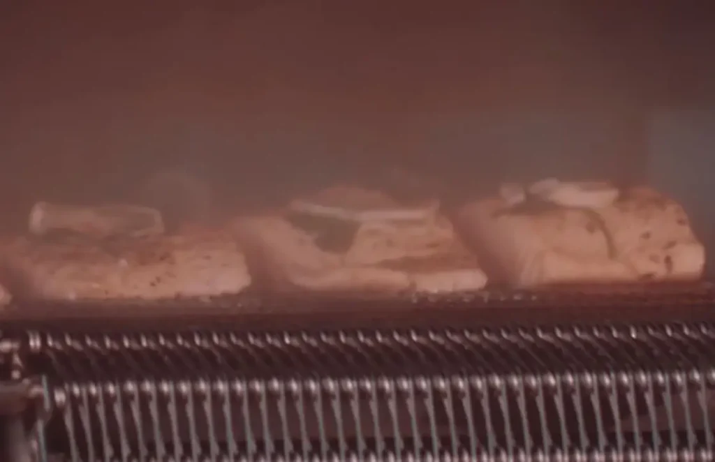 So, what is super-heated steam? Super-heated steam is the non-visible clear, colorless gas obtained by heating ordinary steam at 100°C to a higher temperature under normal pressure. The Marlen spiral oven requires that the steam supplied be greater than 5-bar (80 PSI). Importantly, this high-pressure steam supply is then introduced directly into the oven’s heat exchanger. While in “Roast Mode,” this steam supply of greater than 5 bar (80 PSI) maintains a gaseous state as a vapor and continues to be heated by the oven’s heat source—this “super-heats” the steam vapor and creates more available energy with which the product will be cooked. Thus, the super-heated steam will have more energy with which to cook the product than the energy contained in ordinary hot air from a convection oven. This approach is like “super-charging” an engine that allows the production rate to speed up and the product yield to be optimized.